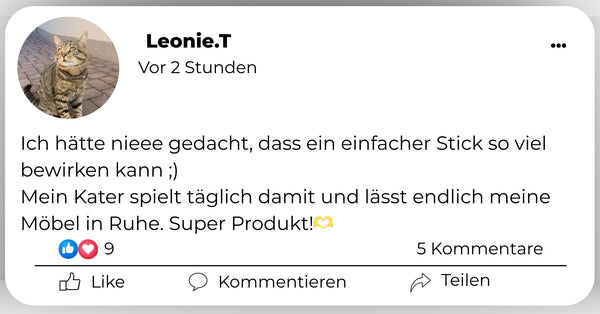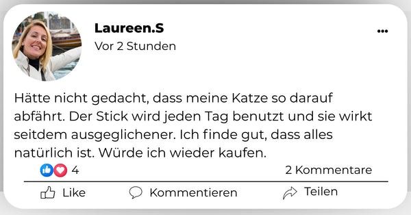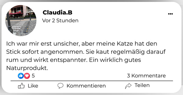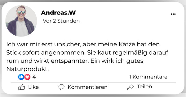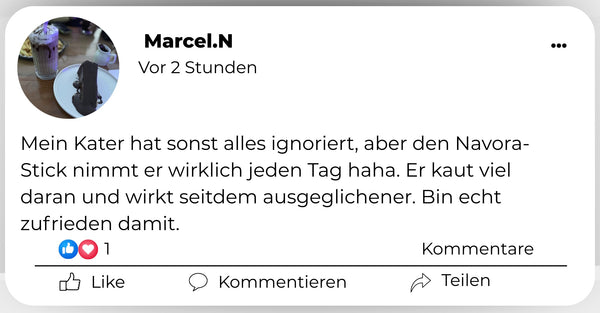Mit dem Navora Silvervine Stick bleibt dein Zuhause entspannter. Deine Katze lässt Möbel und Kabel in Ruhe und beschäftigt sich lieber mit dem Stick. Weniger Chaos – mehr Spaß für euch beide.