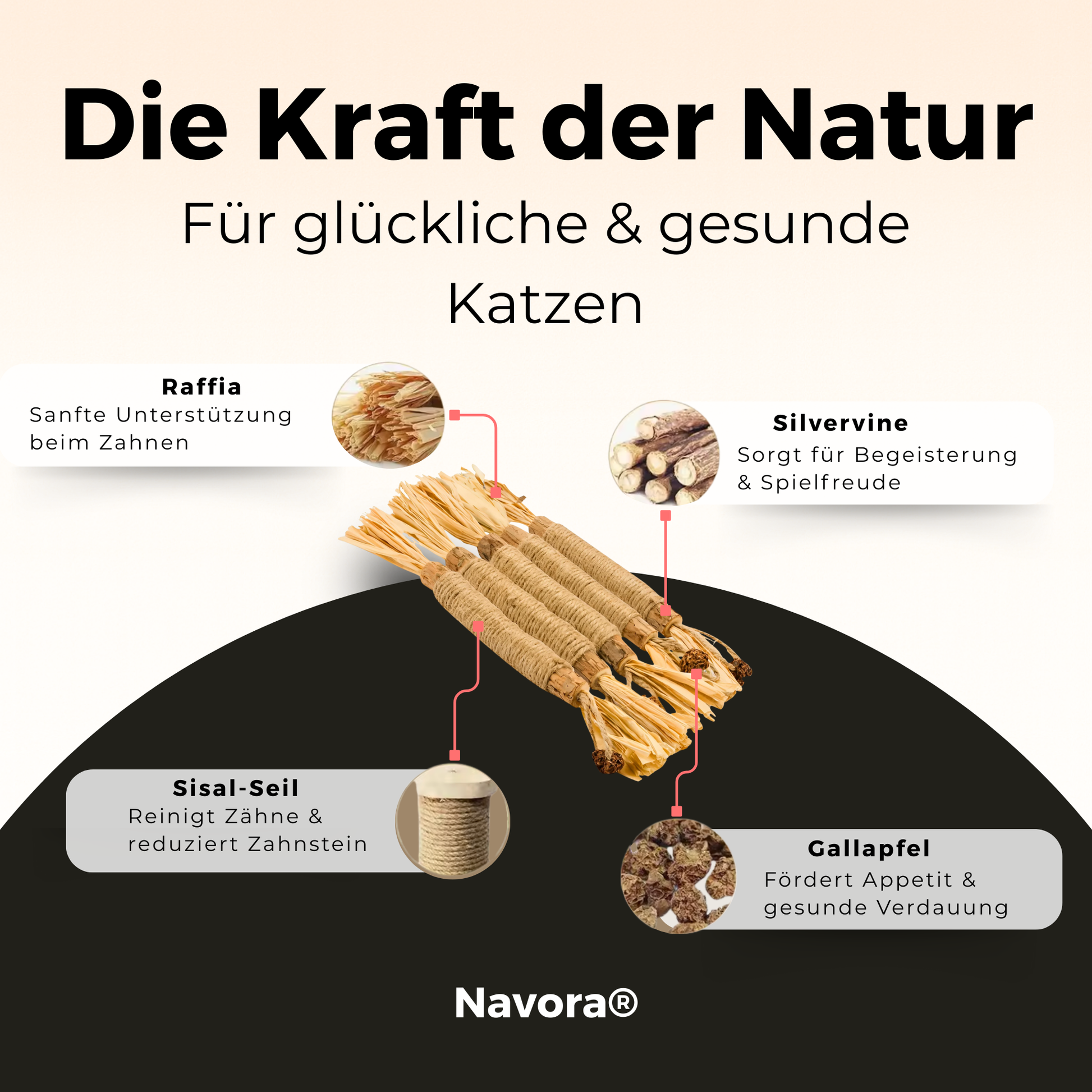 Mit dem Navora Silvervine Stick reinigt deine Katze ihre Zähne ganz natürlich beim Kauen.